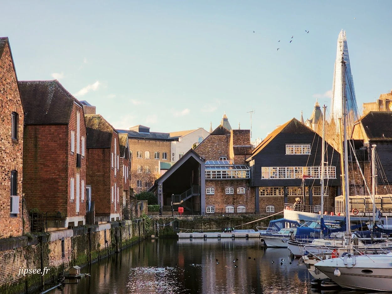 En remontant la Tamise jusqu’au London Bridge, nous profitons du soleil d’hiver pour longer la Tour de Londres et continuons tout droit jusqu’aux docks de St Katharine. C’est par une passerelle juste derrière le London Bridge que nous accédons au cœur de ce havre de paix, loin de l’agitation des grandes artères londoniennes.