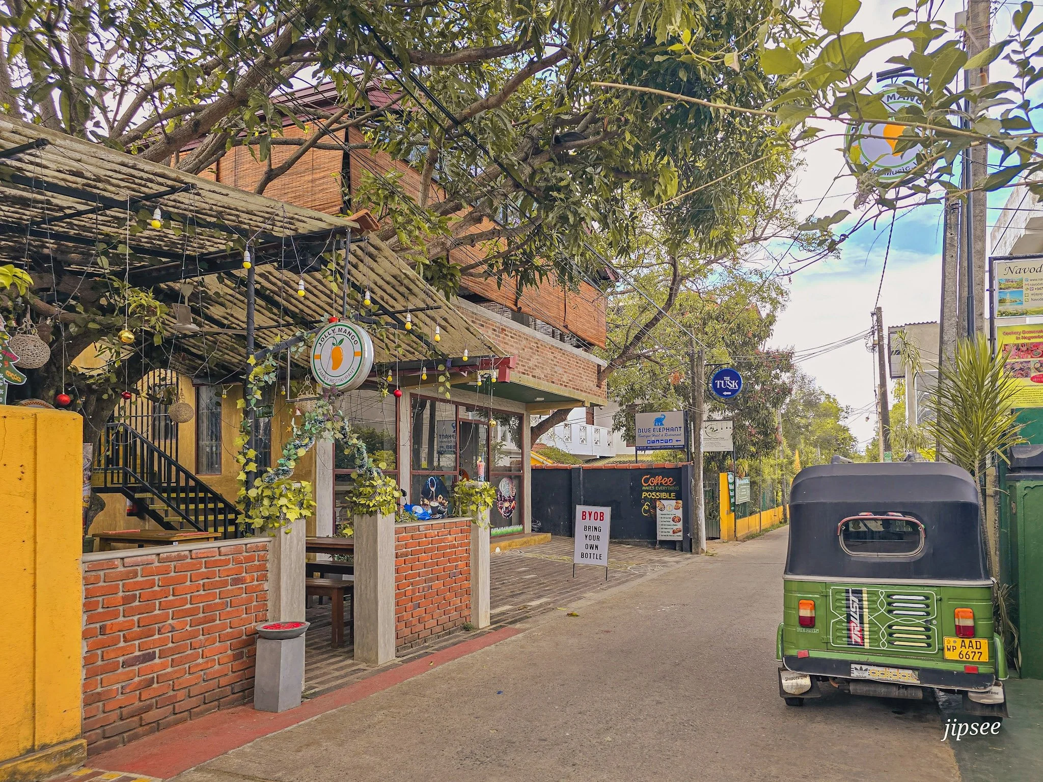 Je m'arrête au restaurant The Tusk, juste à côté de la guest house Elephant Blue. L'endroit a l'air sympa avec sa déco colorée et sa petite terrasse ombragée. Je m'installe et commande LE plat que tout le monde me recommandait avant mon départ : un kottu au poulet.